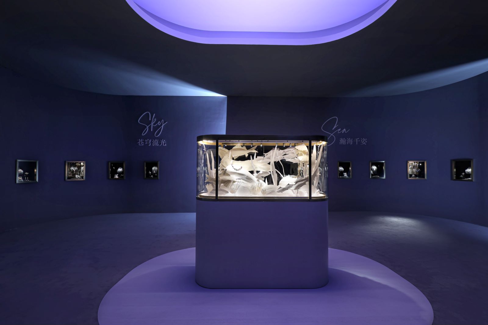 为进一步传递自然色彩的鲜活气息,蒂芙尼以巧思打造沉浸式体验空间。360°视频投影搭配立体音乐效果,时而勾勒静谧幽蓝的水下之境,时而演绎蝶鸟纷飞的无垠天际,令人身临其境感受珠宝之艺与自然之美的奇妙交汇。
