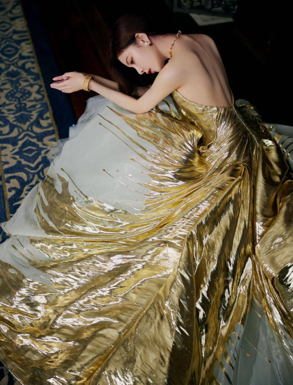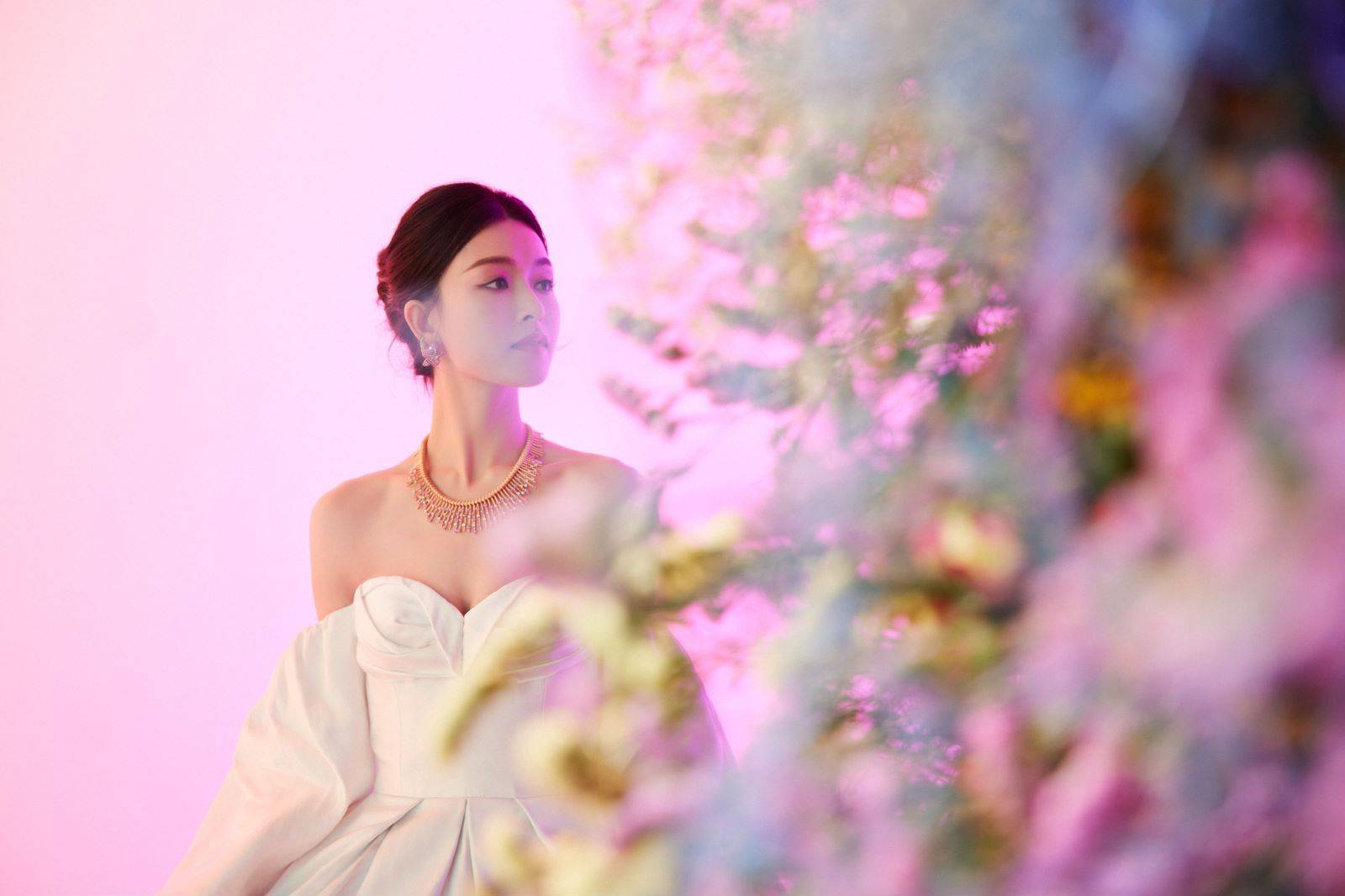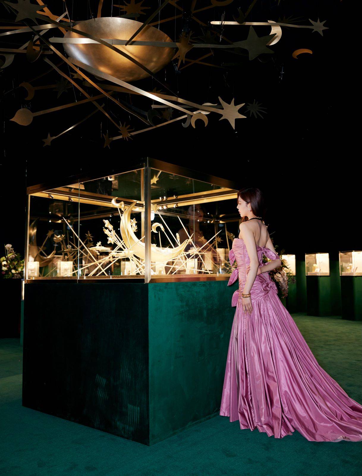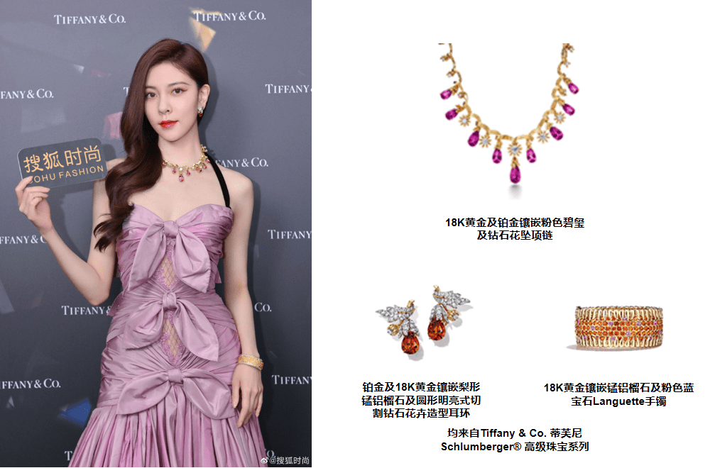 CiCi宋妍霏本次更特别准备了两套礼服搭配此次重量级的活动,粉色鱼尾礼服和金色礼服两套Look搭配全套高级珠宝系列项链、耳环和手镯,华丽高级,贵气逼人!
